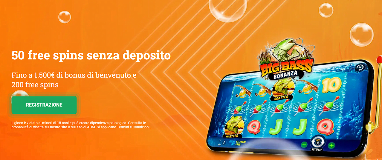 | Bonus senza deposito | 100 free spins se ti registri con SPID o 50 free spins con registrazione classica |